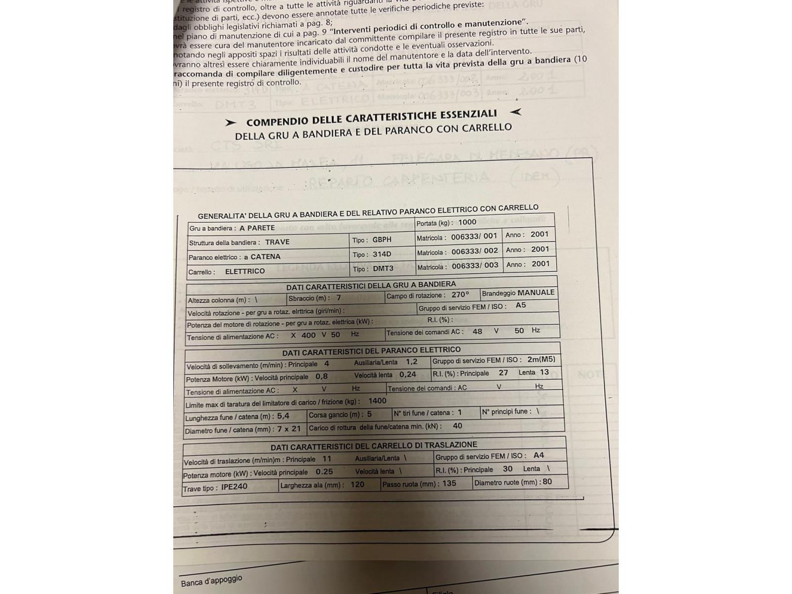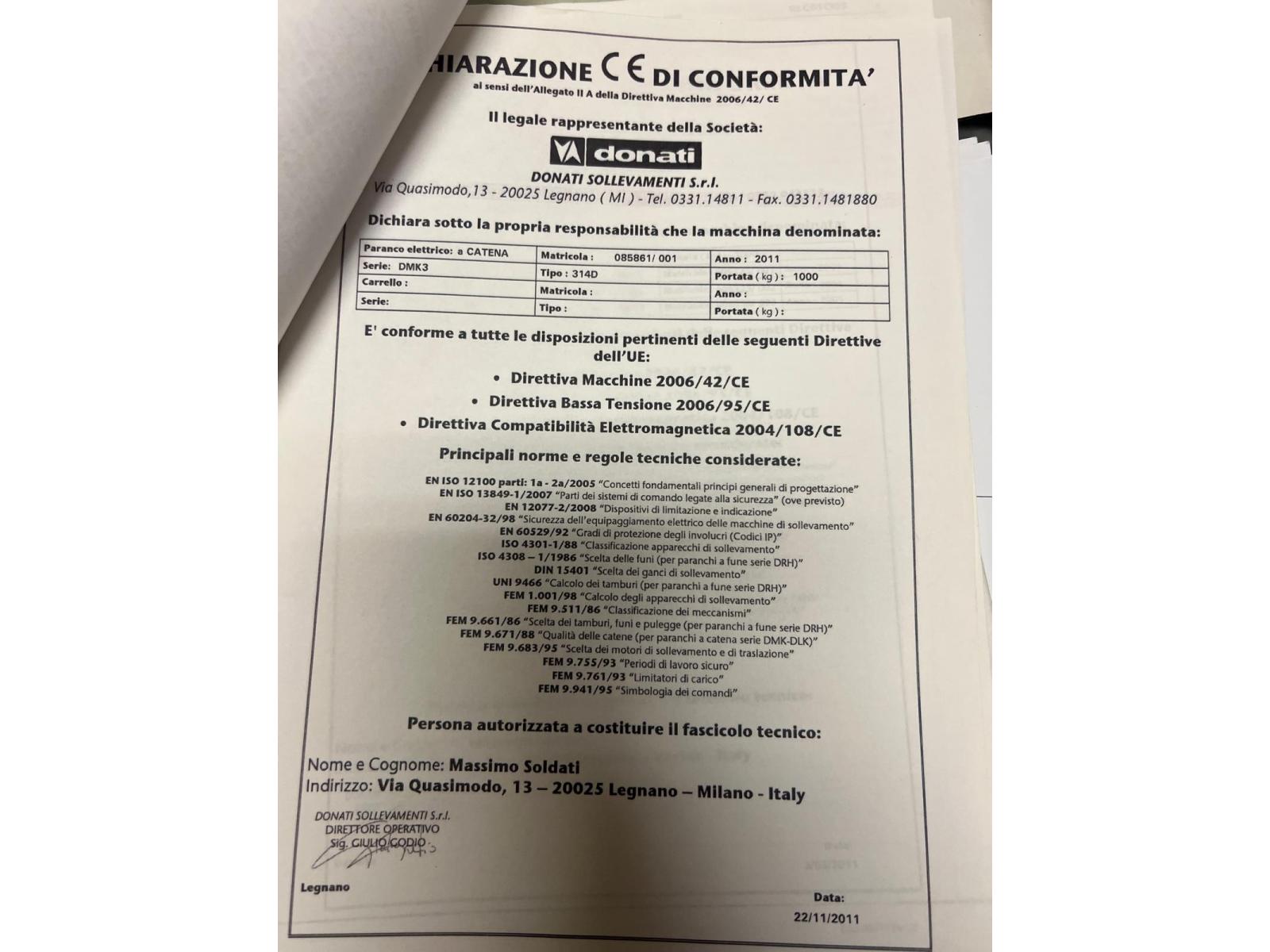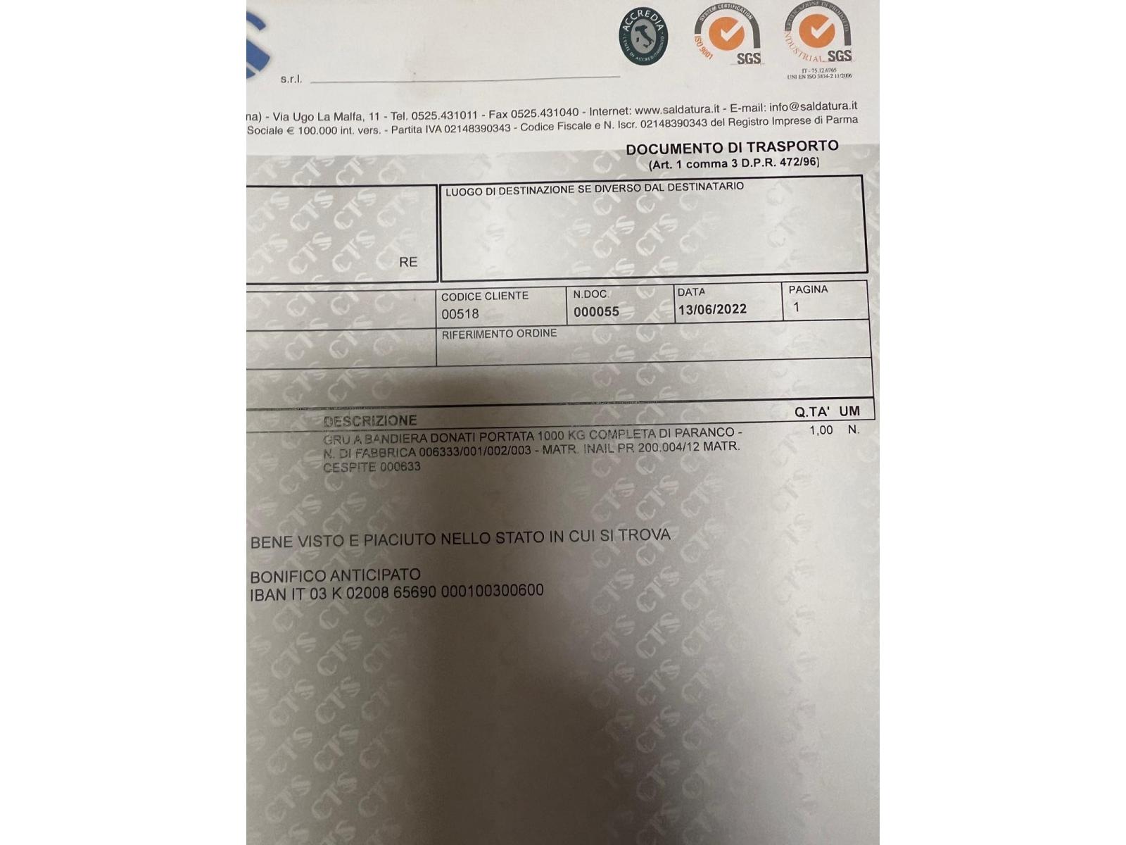 GRU A COBANDIERA DONATI 1000 KG DECLASSATA codice prodotto: 34001