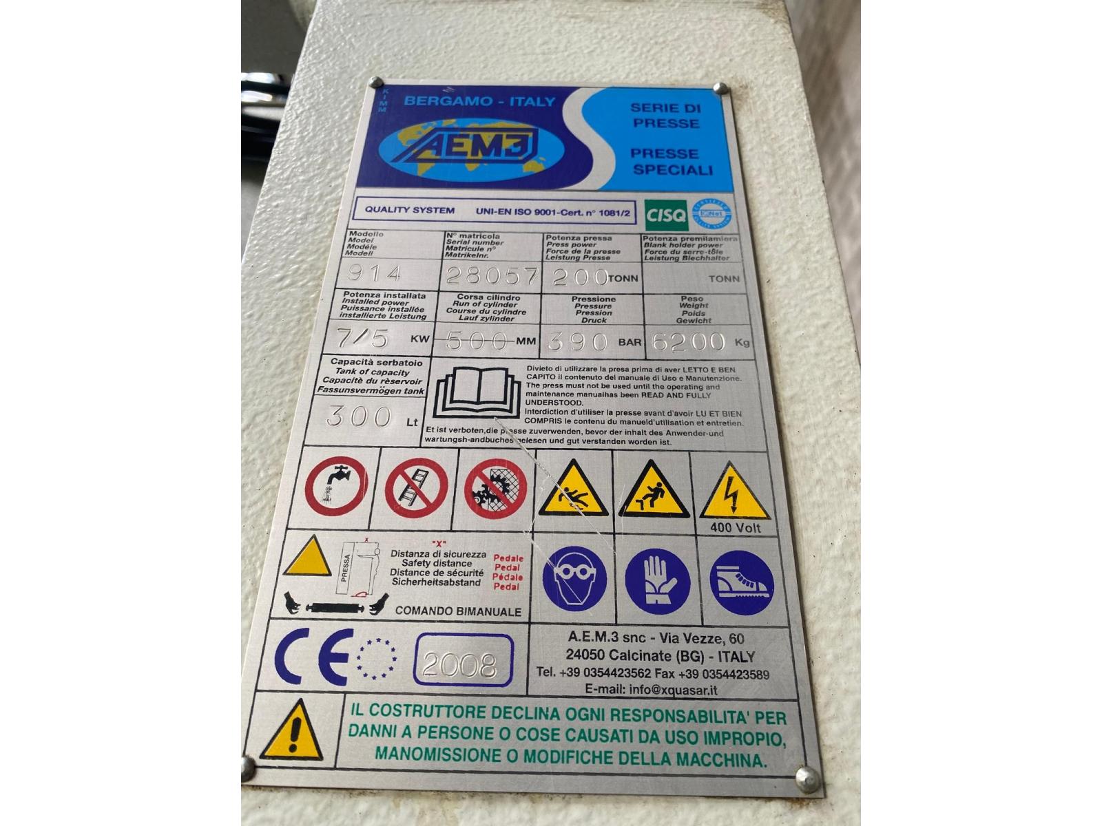 PRESSA IDRAULICA AEM3 200 TON codice prodotto: 33786